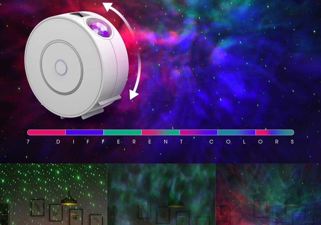 Lampa umożliwia wyświetlanie zarówno spokojnego, rozgwieżdżonego nieba, jak i dynamicznych galaktycznych fal. Dzięki prostej konfiguracji użytkownicy mogą wybrać różne tematy projektora, takie jak spokojne niebo, migoczące gwiazdy czy nawet wielokolorowe efekty tęczy. Te różnorodne opcje pozwalają na łatwe dostosowanie atmosfery do różnych okazji i nastrojów.